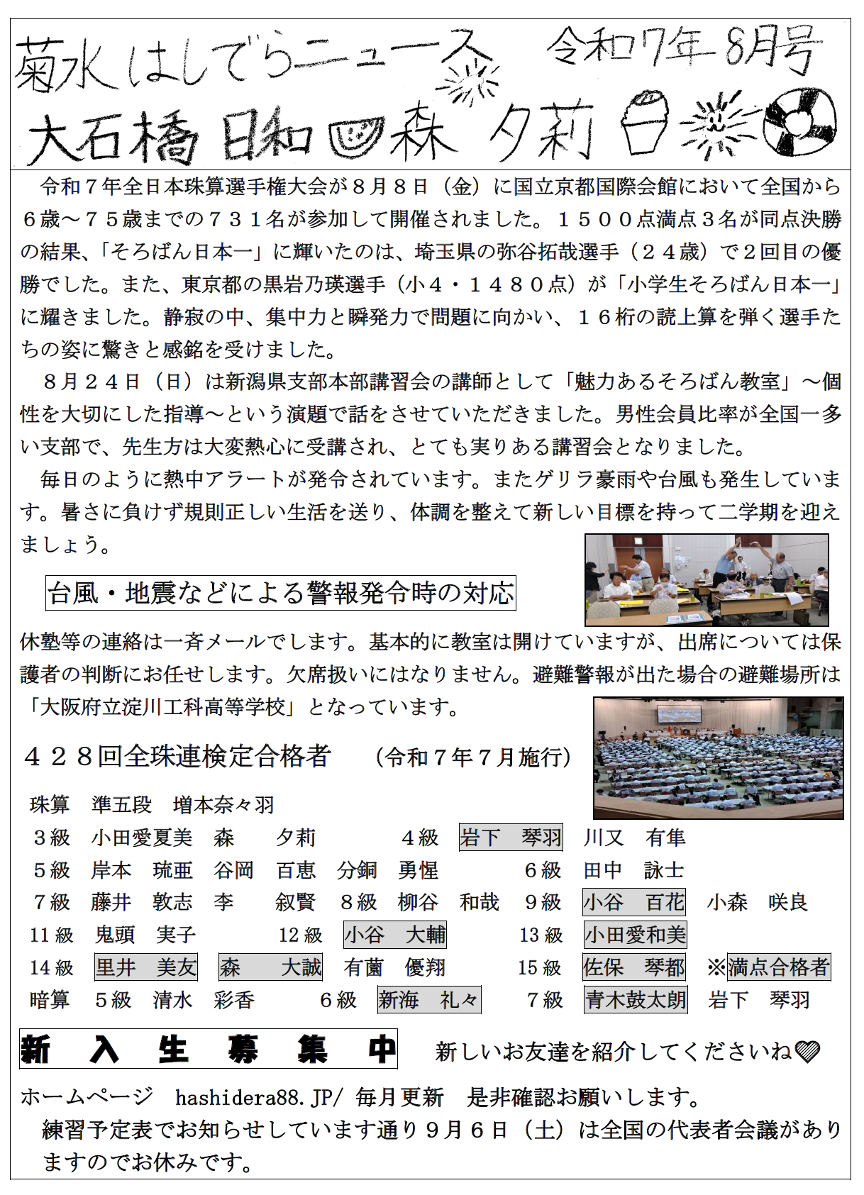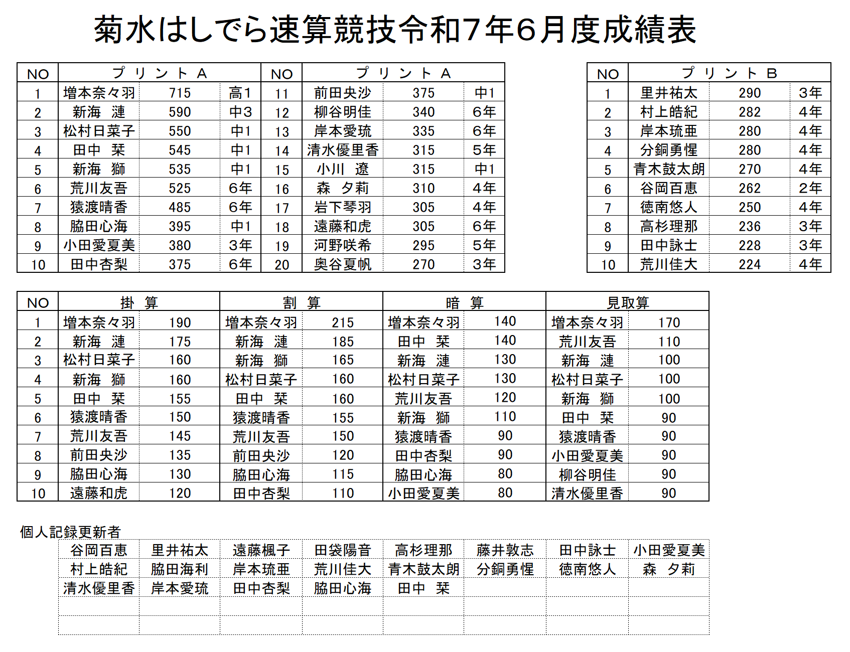 菊水はしでら速算競技令和7年6月度成績表