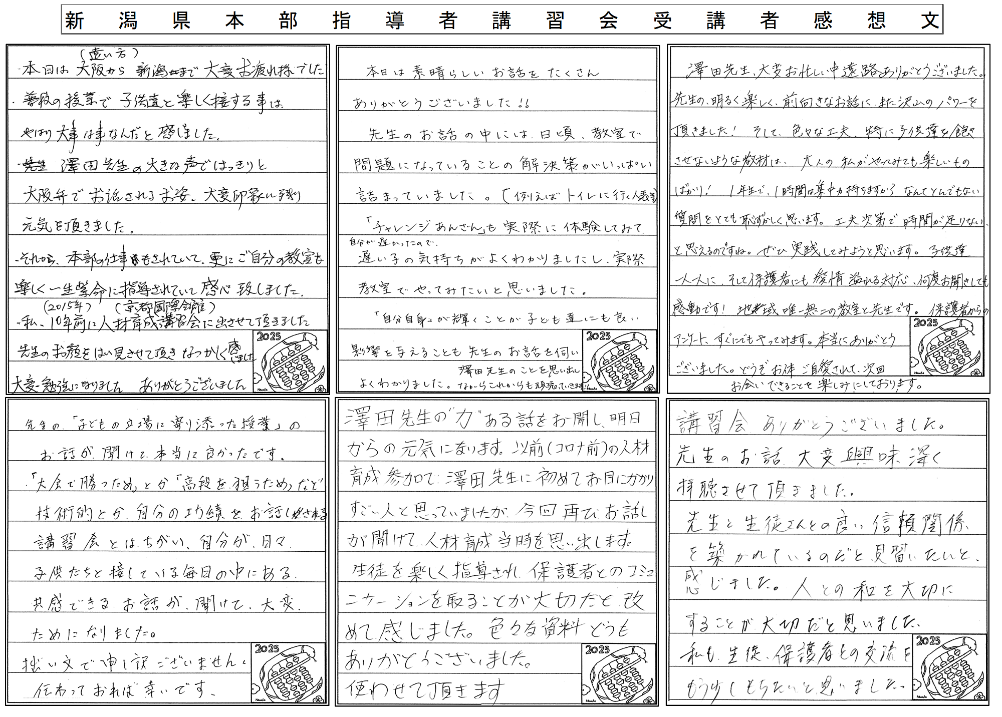 新潟県本部指導者講習会受講者感想文