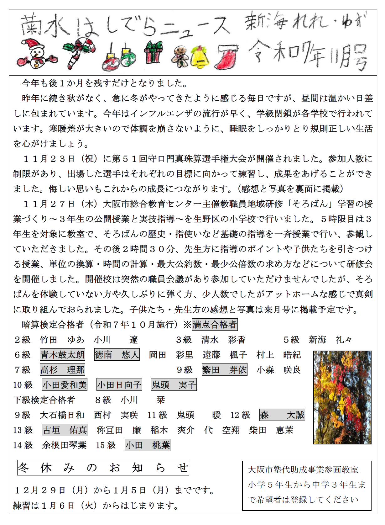 2025年11月のおたより